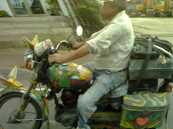 看到沒 ! 車頭一鳳一凰 , 車身紋龍 ! 阿伯你一定是性情中人,在江湖打滾過的喲 。